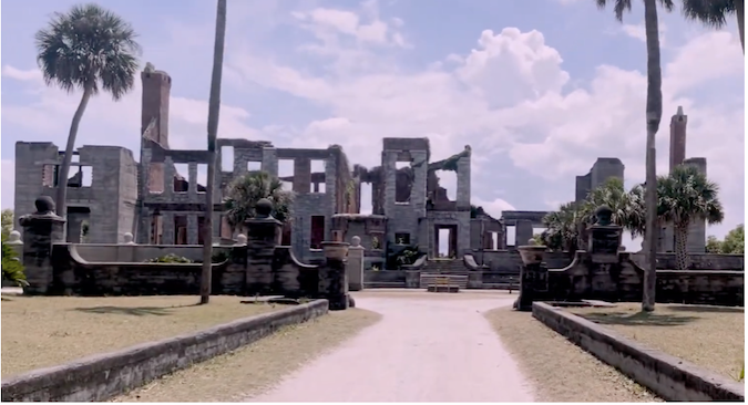 Three perspectives of the Dungeness Estate are presented below. The left column displays historical photographs from the 1890s. The center column features contemporary images of the estate. The right column showcases digitally reconstructed visualizations.